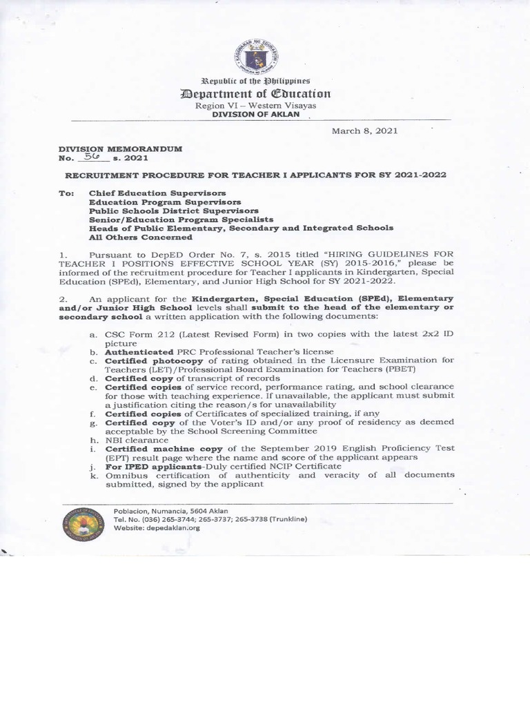Recruitment Procedures For Teacher I Applicants Fo 03112021093227 Pdf