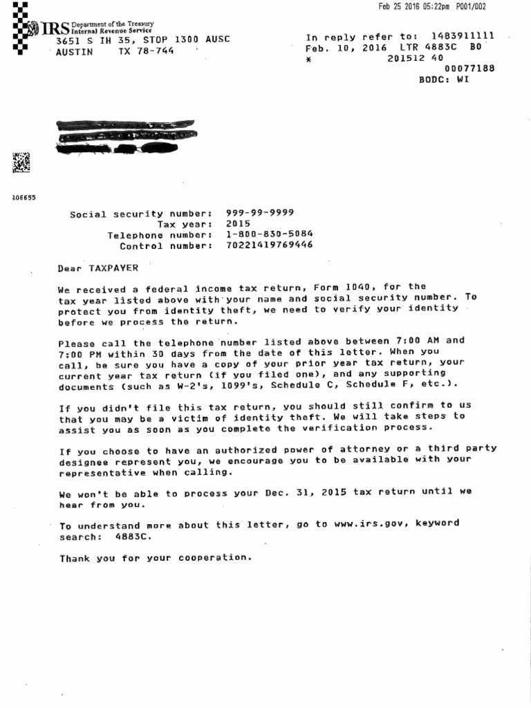 If you get this letter from the IRS its legit. 4883C Identity Verification IRS needs the taxpayer to verify his or her identity before the return will be processed. Letter to collection agency on medical account reporting with a balance due letter to collection agency on medical account reporting as paid plus follow up dispute letter for both to cra this is only to be used when the hipaa letter to the oc can not be immediately used collection agency validationdisputecease and desist use this in its entirety.