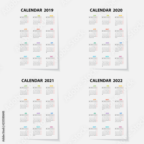 Calendar 2019 2020 2021 And 2022 Calendar Template Calendar Design Yearly Calendar Vector Design Stationery Template Vector Illustration Stock Vector Adobe Stock